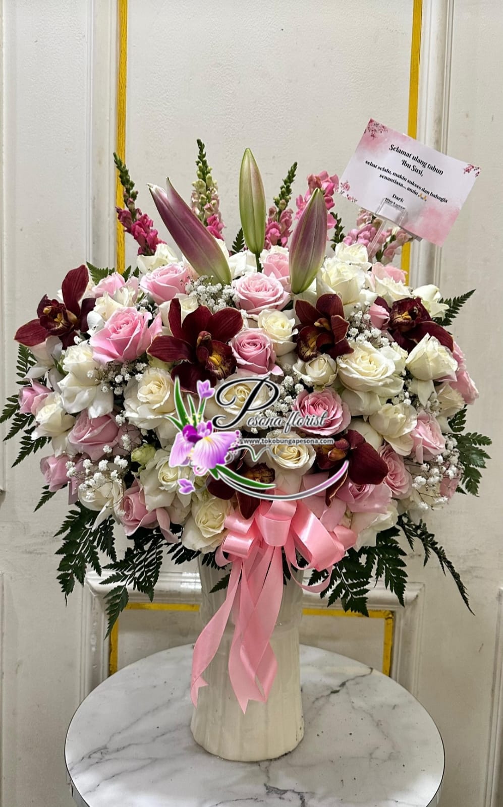 Pesona Florist adalah penyedia layanan rangkaian bunga profesional yang berkomitmen menghadirkan keindahan dan makna dalam setiap momen spesial Anda. Kami melayani berbagai kebutuhan bunga dan dekorasi, mulai dari Flower Board (Papan Bunga), Table Flowers (Bunga Meja), Handbouquet (Karangan Tangan), hingga Styling Event & Dekorasi Acara, dengan jangkauan layanan ke berbagai daerah di Indonesia.